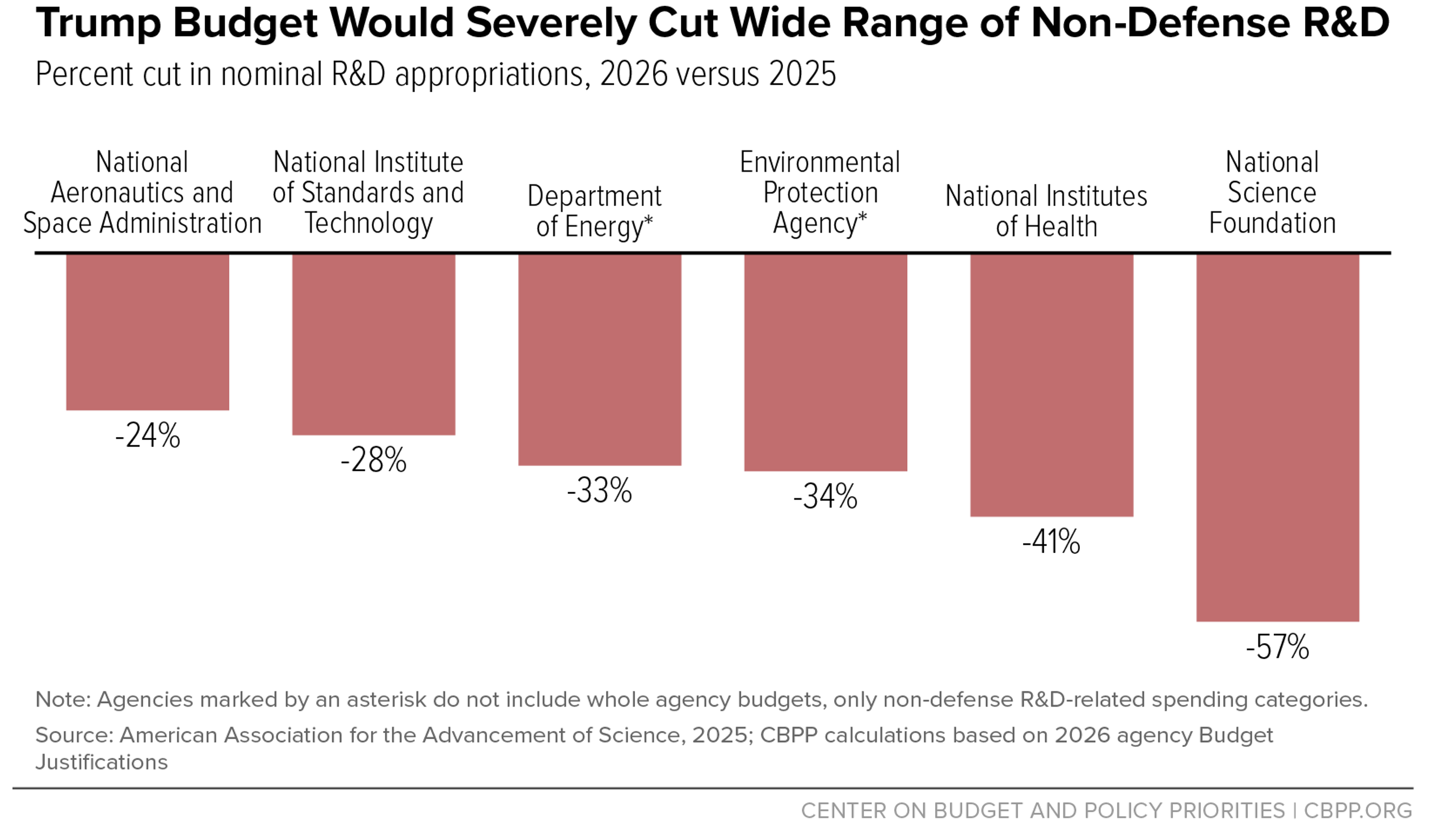 The Center on Budget and Policy Priorities has released a devastating graph showing the scale of these cuts. It’s not just numbers. It’s a portrait of national decline. Every line trending downward represents a missed cure, a delayed breakthrough, a shuttered lab.