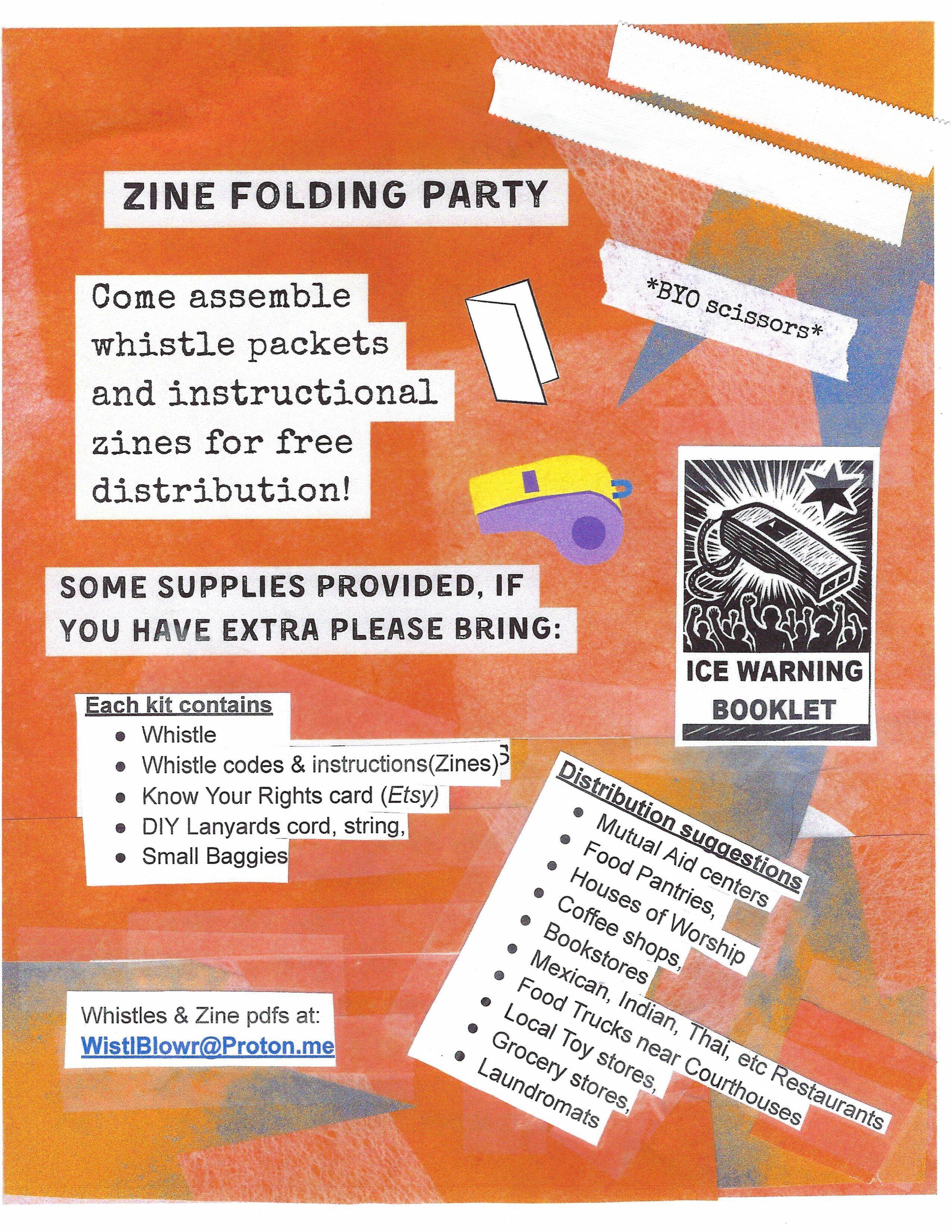 We provide the whistles and zines; you simply enjoy the company of friends while contributing to the safety of our neighbors and loved ones. Order your materials today: Kathleen@[email protected].